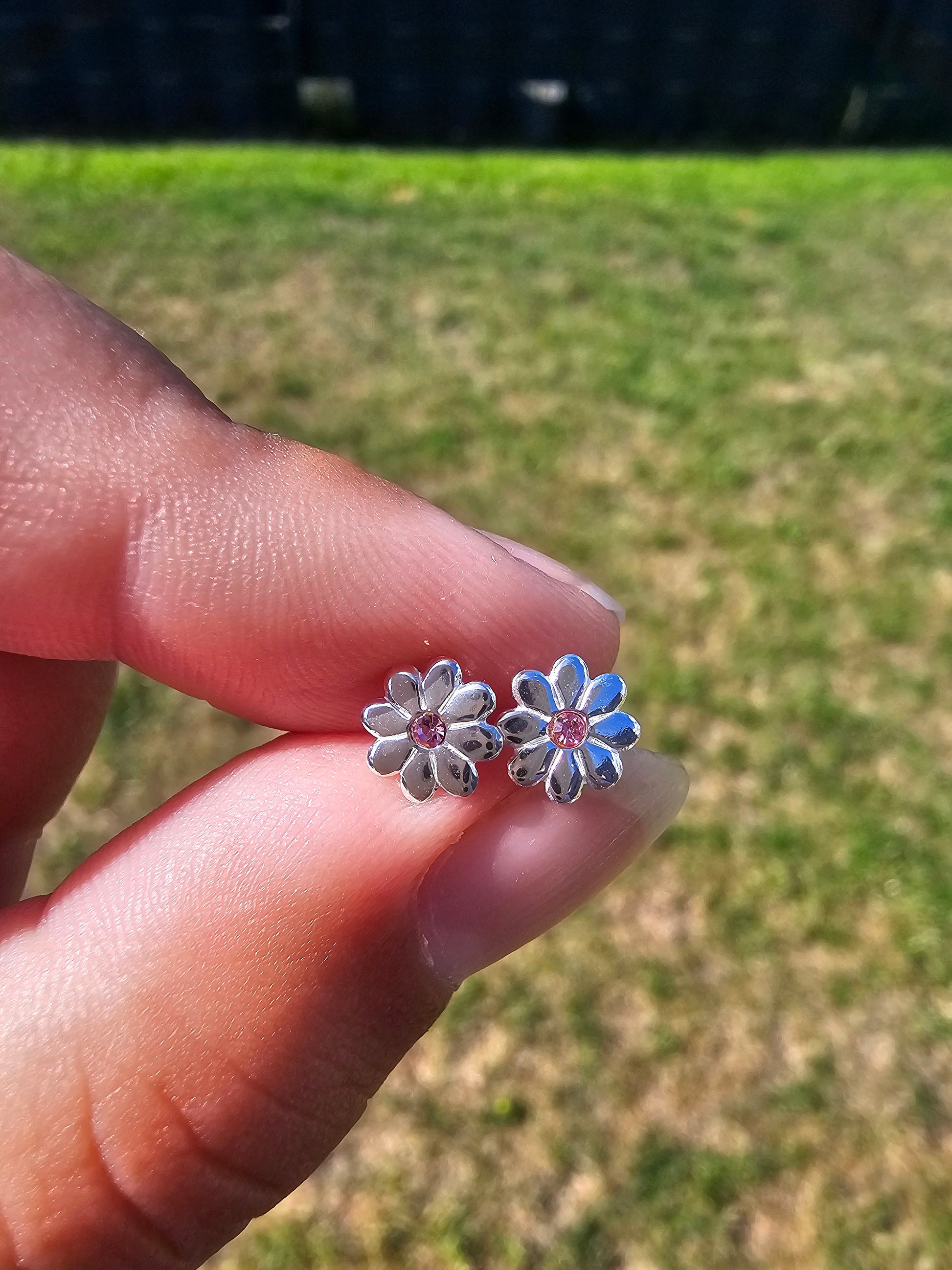 Sterling Silver Blush Bloom Flower Stud Earrings — Tiny Pink Crystal, Hypoallergenic