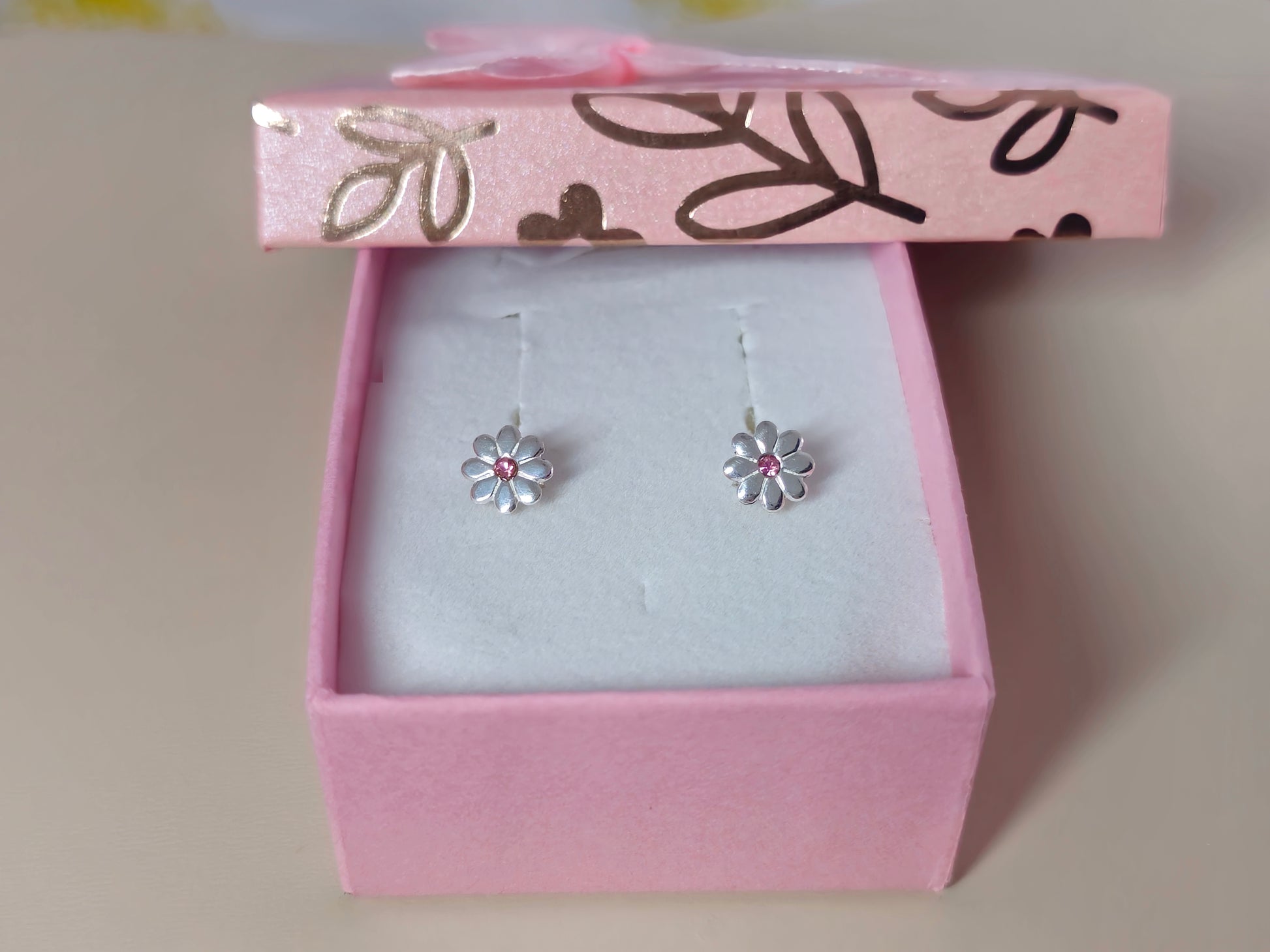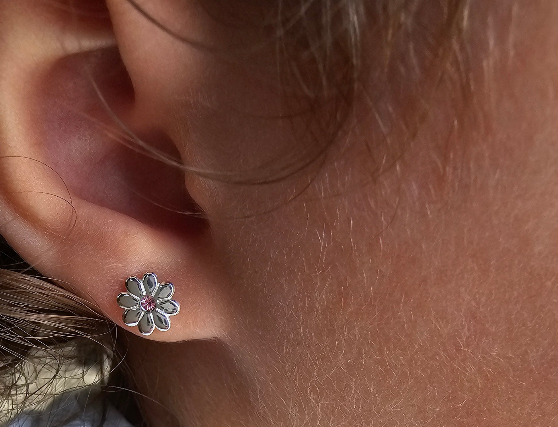 Blush Bloom is a tiny flower stud with a soft pink crystal center, crafted in 925 sterling silver for a gentle, child-friendly sparkle. Lightweight and hypoallergenic, these studs are designed for babies, toddlers and anyone who loves a delicate floral accent.