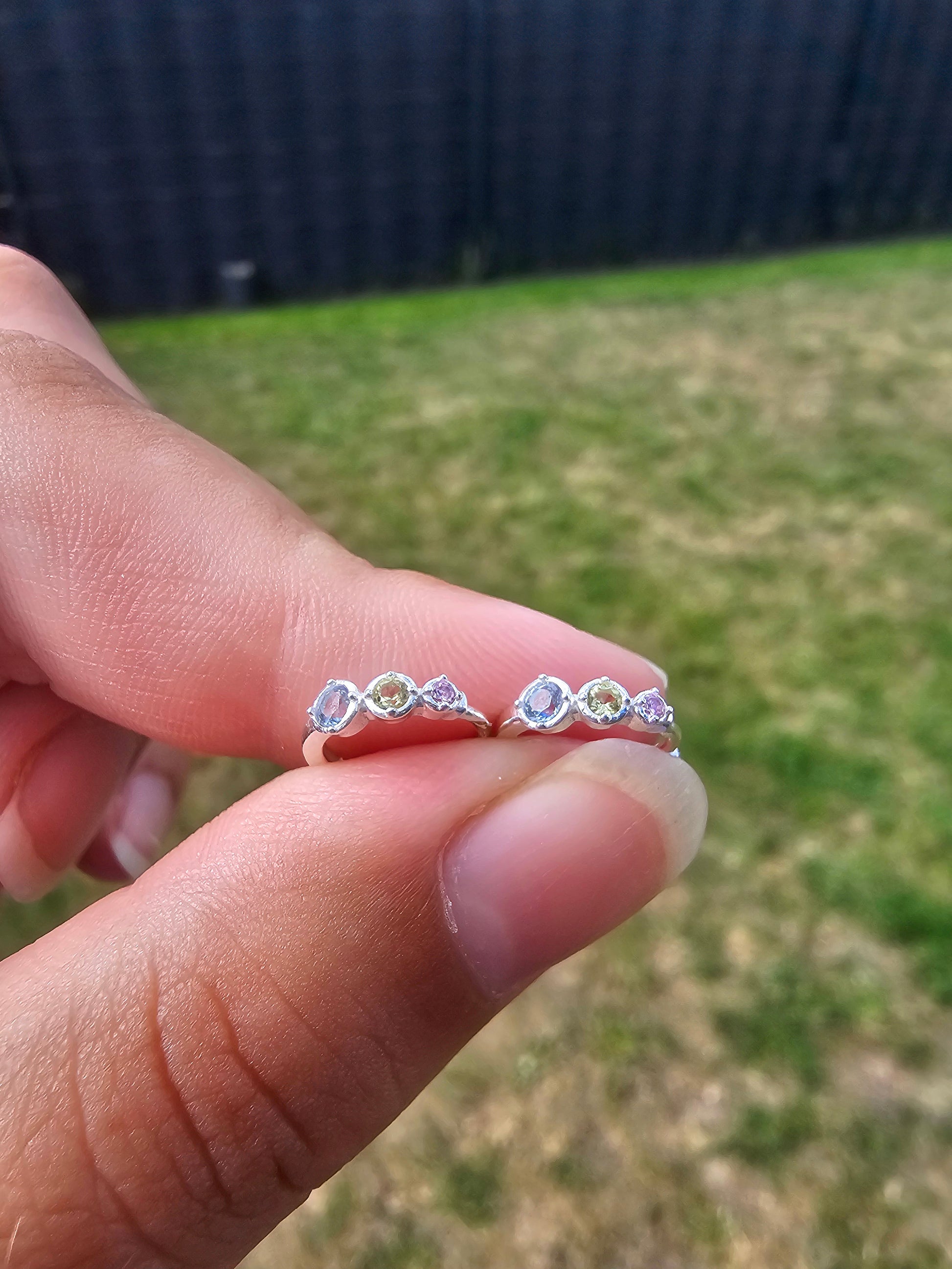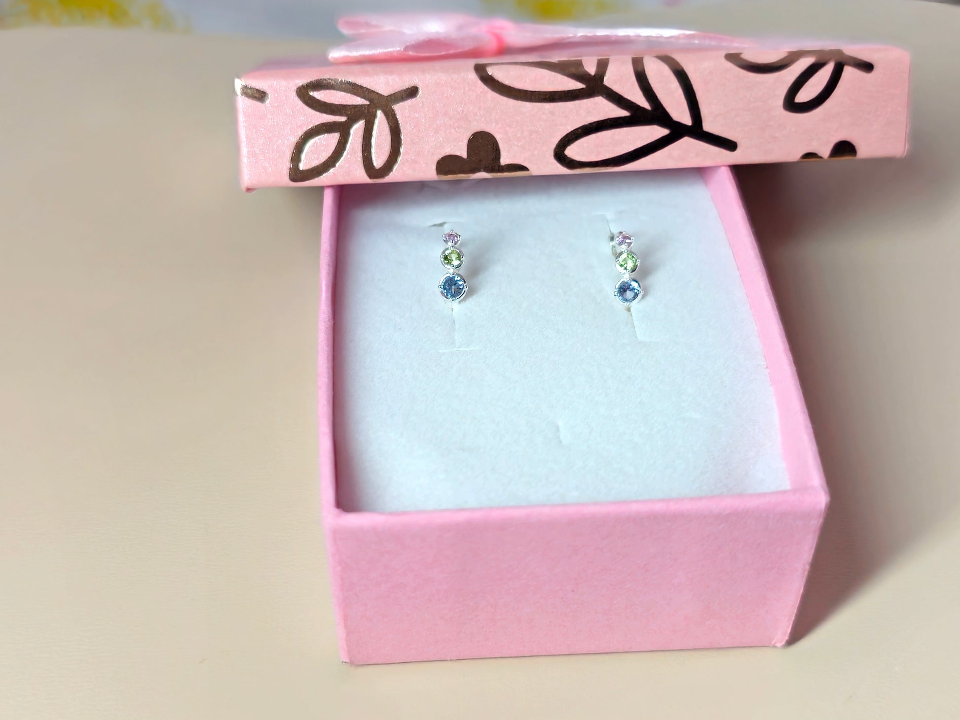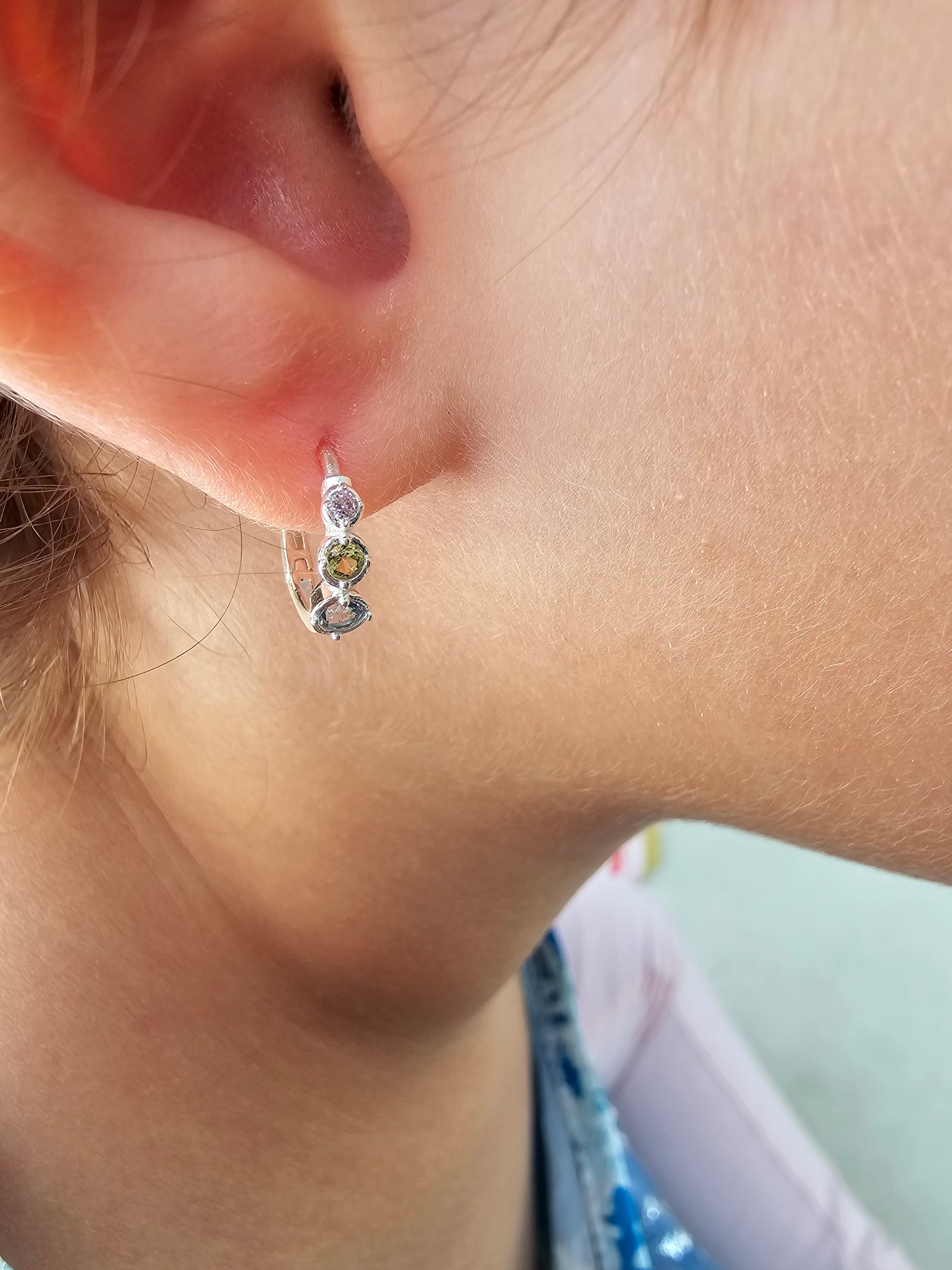 Brighten everyday moments with these tiny Harmony Trio hoops — three soft tones of cubic zirconia set into lightweight 925 sterling silver hoops. Designed with little stars in mind, they’re hypoallergenic and comfortable for children and adults who prefer a delicate, playful sparkle.