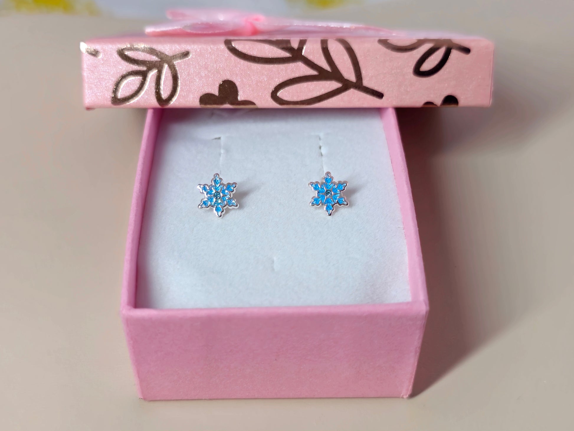 Delicate snowflake studs crafted from 925 sterling silver — Winter Spark captures the soft frosty look in a tiny, comfortable stud perfect for babies, toddlers and anyone who loves subtle winter sparkle. These hypoallergenic earrings are lightweight and designed for sensitive ears.